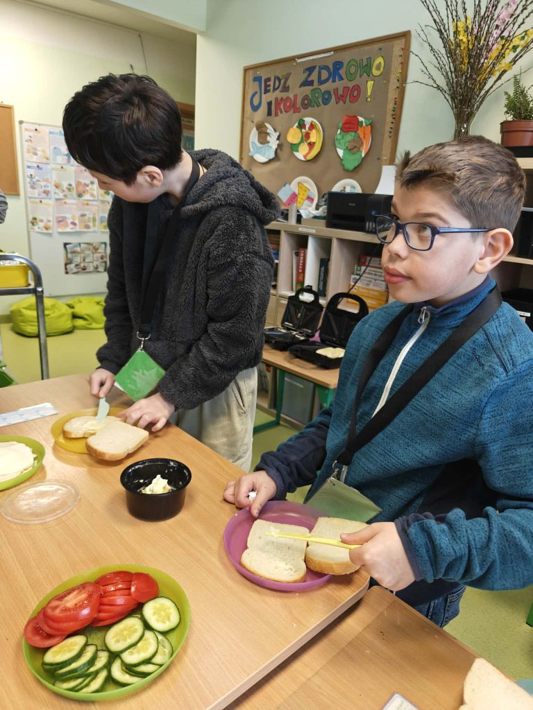 Zajęcia sprawiły uczniom wiele radości, a możliwość samodzielnego przygotowania posiłku była dla nich cennym doświadczeniem i świetną zabawą. Na zakończenie wszyscy z apetytem skonsumowali przygotowane przez siebie kanapki, z dumą delektując się efektem swojej pracy.