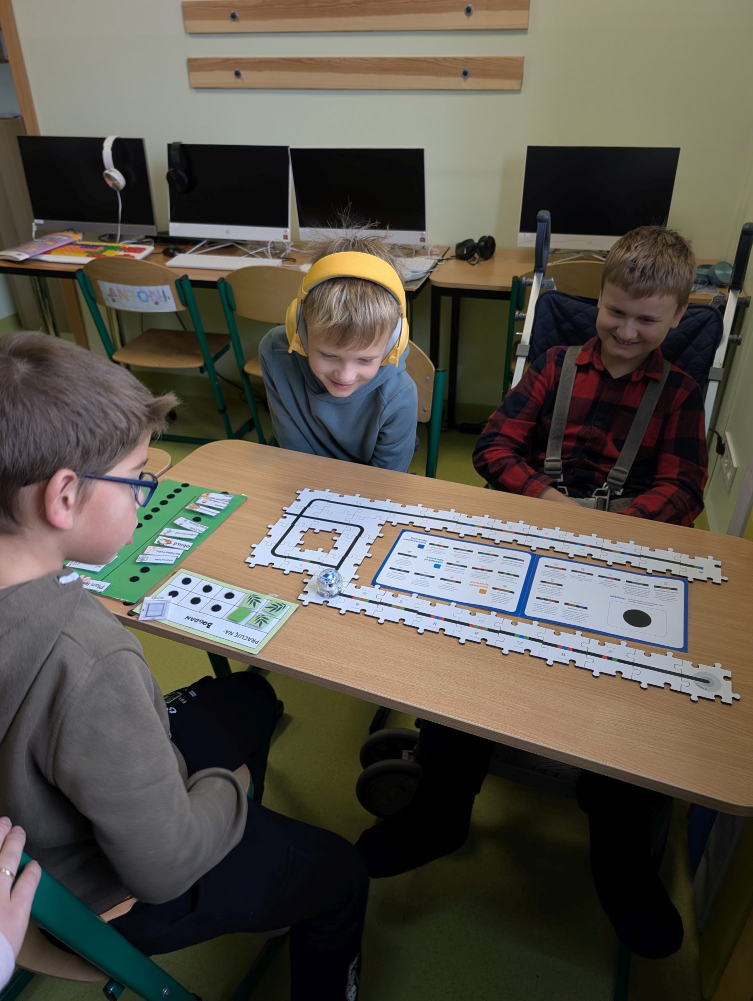 Na zajęciach z informatyki uczniowie mają okazję poznawać świat programowania w praktyczny i angażujący sposób, korzystając z robotów edukacyjnych Ozobot. Dzieci uczą się logicznego myślenia, planowania i współpracy, programując ruch robota za pomocą kolorowych kodów. Zajęcia rozwijają kreatywność, spostrzegawczość i umiejętność rozwiązywania problemów, a przy tym dostarczają wiele radości i satysfakcji z samodzielnie osiągniętych efektów.