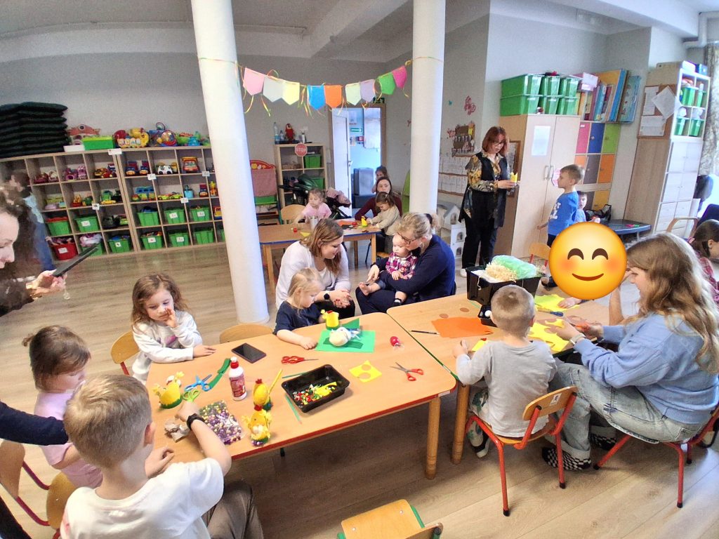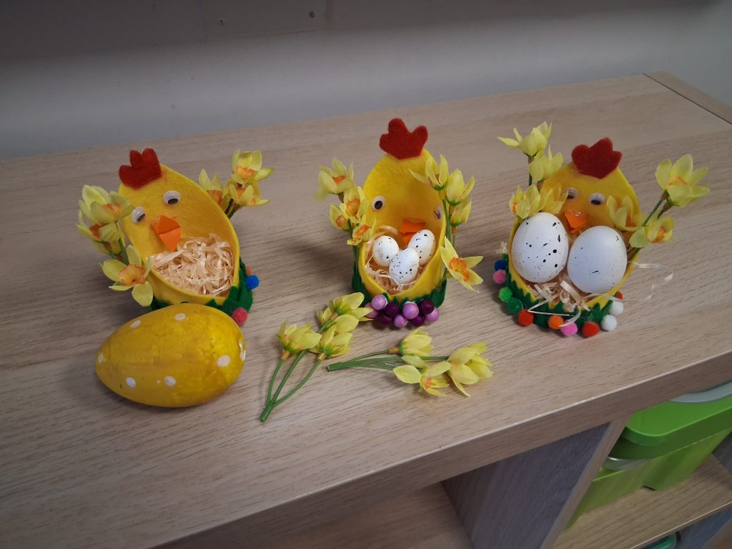 Dzieci wraz z rodzicami miały możliwość stworzenia przepięknych ozdób, które wprowadziły do sal radosny, wiosenny nastrój. Powstały między innymi: